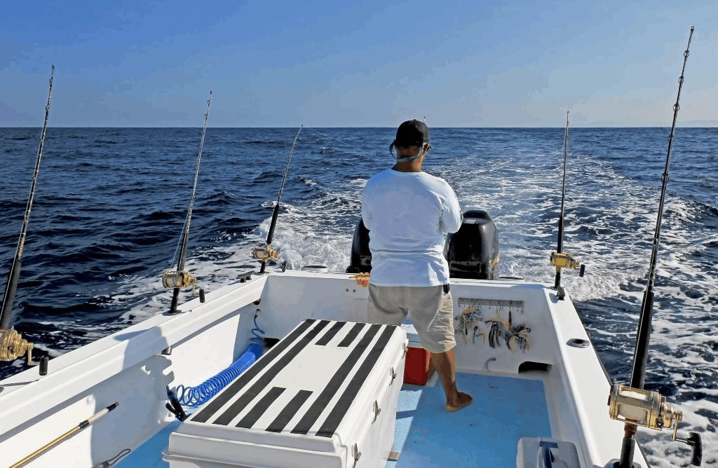 Trolling is the way to find the school Bluefins as it lets you search and cover large areas. Use of outriggers and your tackle should consist of snap swivels so that anglers can swap the rigs easily. Note, they usually bite more aggressively during the evening and morning hours. Locate them near offshore islands, reefs, or deep-feeding areas.